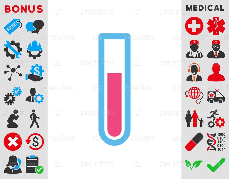 Пробирку иллюстрации значок. Стиль является биколор плоский символ, розовый и голубой цвета, закругленные углы, белый фон