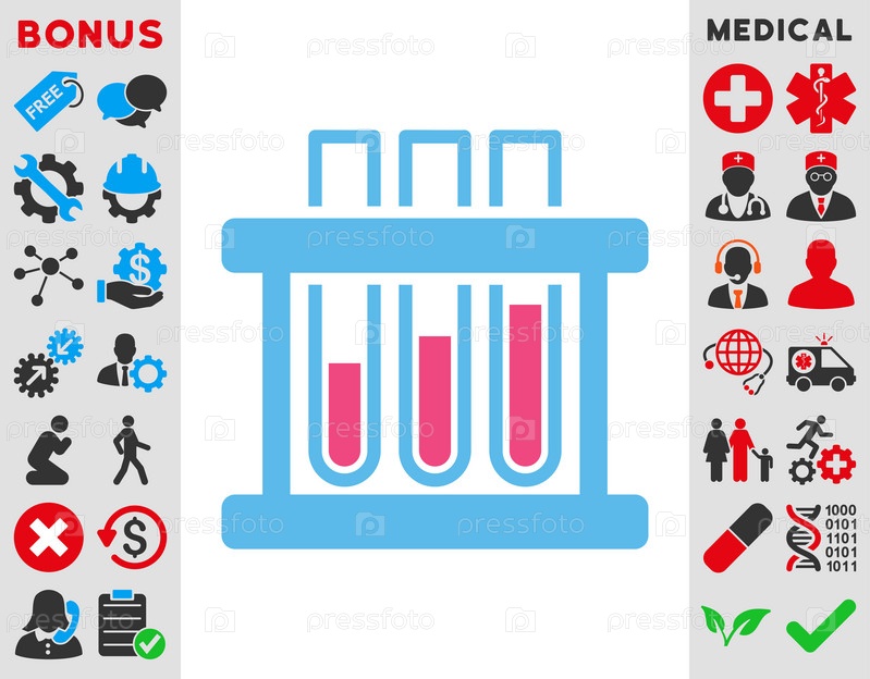 Пробирки иллюстрации значок. Стиль является биколор плоский символ, розовый и голубой цвета, закругленные углы, белый фон