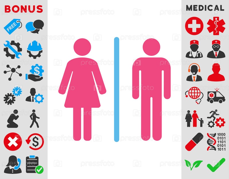 Туалеты иллюстрации значок. Стиль является биколор плоский символ, розовый и голубой цвета, закругленные углы, белый фон