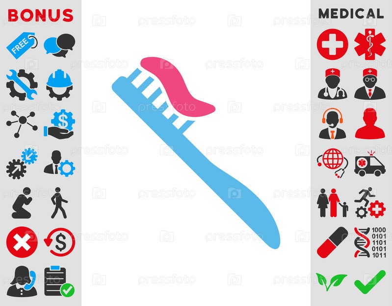 Зубная щетка иллюстрации значок. Стиль является биколор плоский символ, розовый и голубой цвета, закругленные углы, белый фон