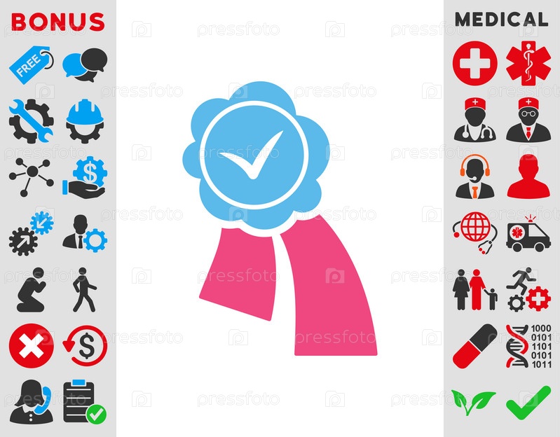 Проверка печати иллюстрации значок. Стиль является биколор плоский символ, розовый и голубой цвета, закругленные углы, белый фон