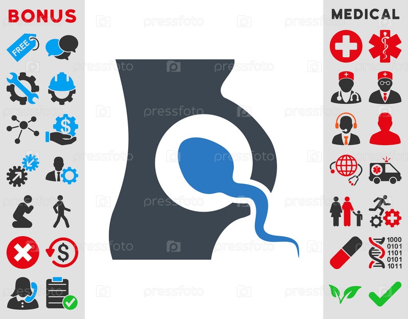 Искусственное осеменение иллюстрации значок. Стиль-биколор плоский символ, гладкая синего цвета, закругленные углы, белый фон