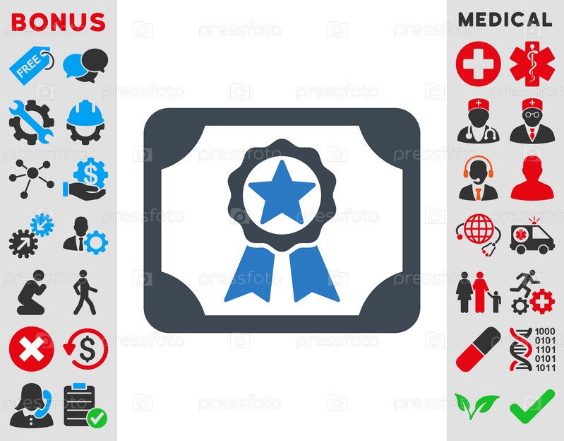 Награда диплом иллюстрации значок. Стиль-биколор плоский символ, гладкая синего цвета, закругленные углы, белый фон