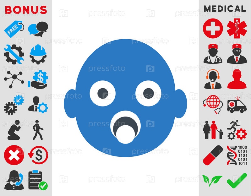 Детские головы иллюстрации значок. Стиль-биколор плоский символ, гладкая синего цвета, закругленные углы, белый фон