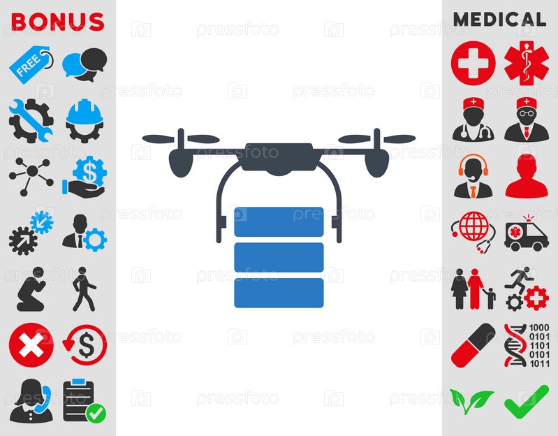 Грузовой беспилотный иллюстрации значок. Стиль-биколор плоский символ, гладкая синего цвета, закругленные углы, белый фон