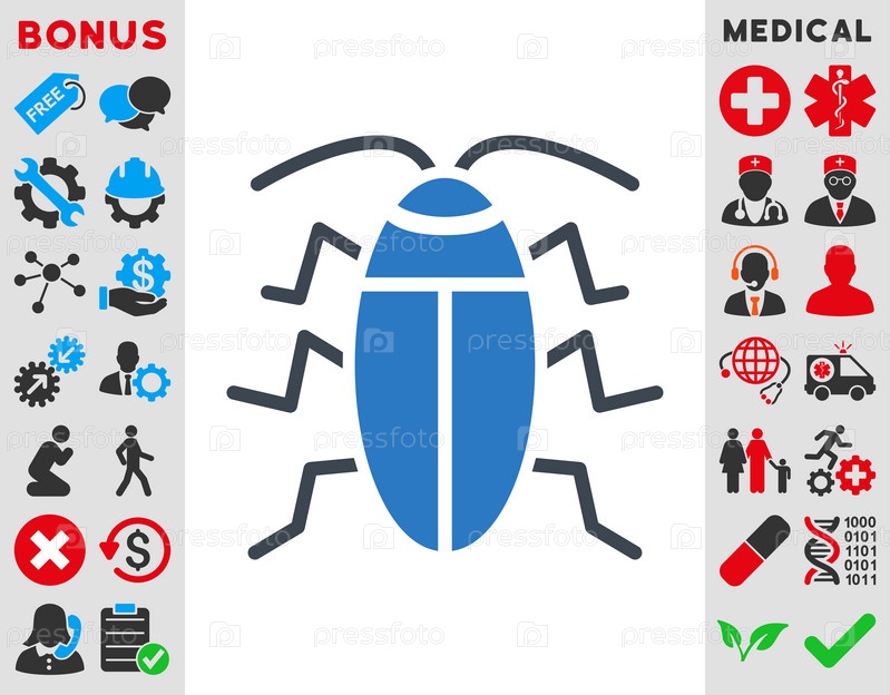 Таракан иллюстрации значок. Стиль-биколор плоский символ, гладкая синего цвета, закругленные углы, белый фон