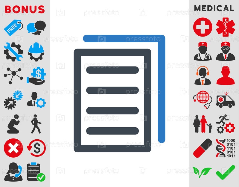Копия документа иллюстрации значок. Стиль-биколор плоский символ, гладкая синего цвета, закругленные углы, белый фон