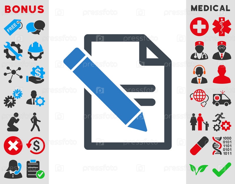 Редактирование записей иллюстрации значок. Стиль-биколор плоский символ, гладкая синего цвета, закругленные углы, белый фон