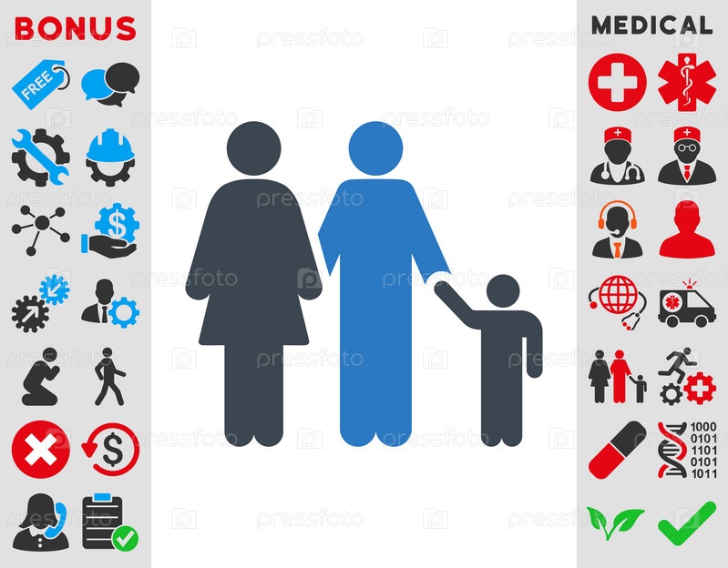 Иконы семейные иллюстрации. Стиль-биколор плоский символ, гладкая синего цвета, закругленные углы, белый фон