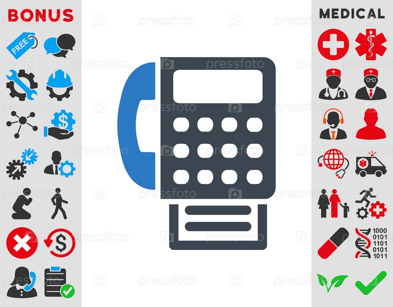 Иконка Факс иллюстрации. Стиль-биколор плоский символ, гладкая синего цвета, закругленные углы, белый фон