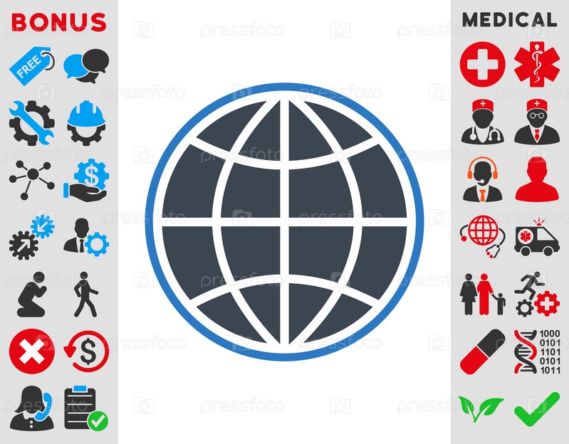 Глобус иллюстрации значок. Стиль-биколор плоский символ, гладкая синего цвета, закругленные углы, белый фон