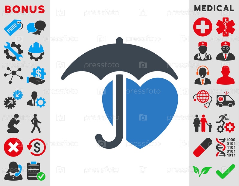 Сердце значок защиты иллюстрации. Стиль-биколор плоский символ, гладкая синего цвета, закругленные углы, белый фон