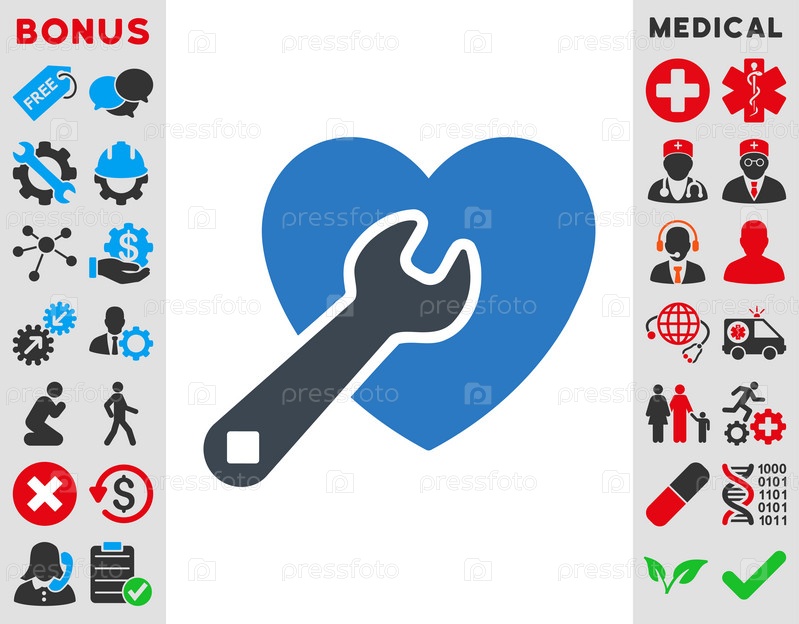 Сердце ремонт иллюстрации значок. Стиль-биколор плоский символ, гладкая синего цвета, закругленные углы, белый фон