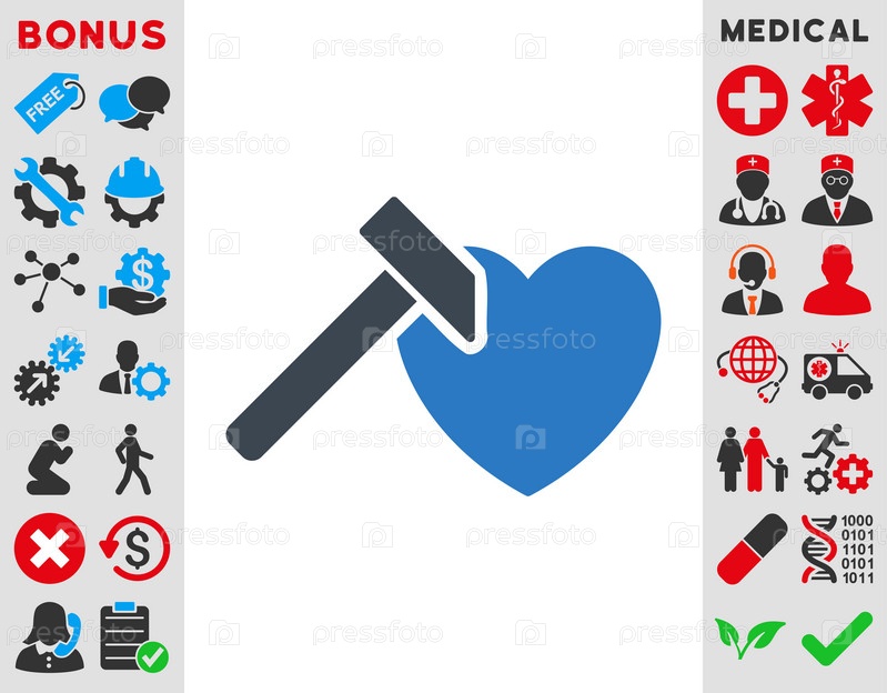Сердце молота иллюстрации значок. Стиль-биколор плоский символ, гладкая синего цвета, закругленные углы, белый фон