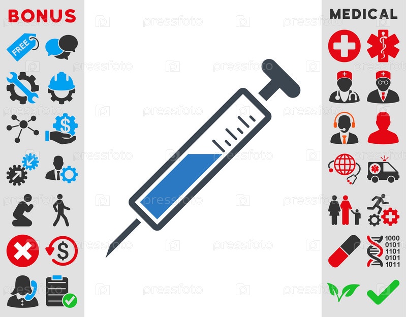Инъекции иллюстрации значок. Стиль-биколор плоский символ, гладкая синего цвета, закругленные углы, белый фон