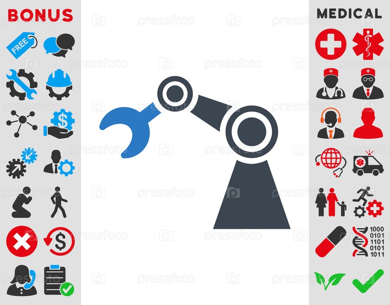 Манипулятор иллюстрации значок. Стиль-биколор плоский символ, гладкая синего цвета, закругленные углы, белый фон