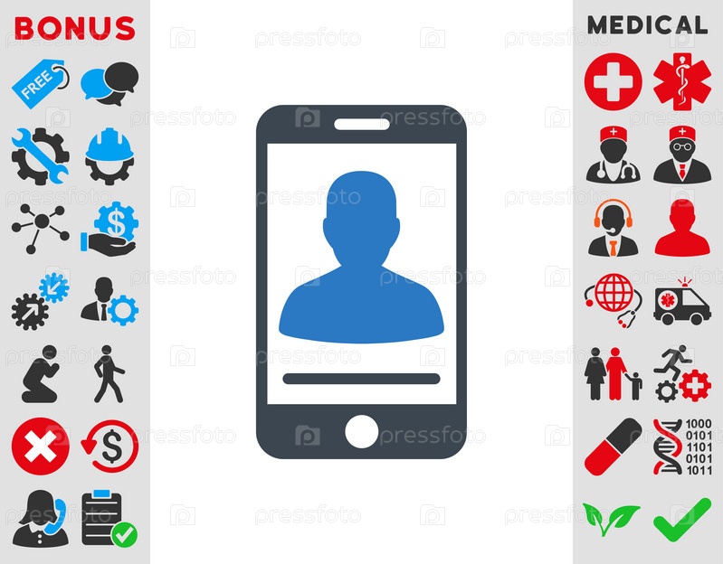 Мобильный контакт иллюстрации значок. Стиль-биколор плоский символ, гладкая синего цвета, закругленные углы, белый фон