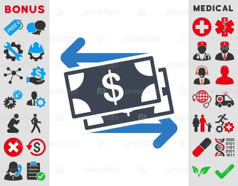 Деньги обмен иллюстрации значок. Стиль-биколор плоский символ, гладкая синего цвета, закругленные углы, белый фон
