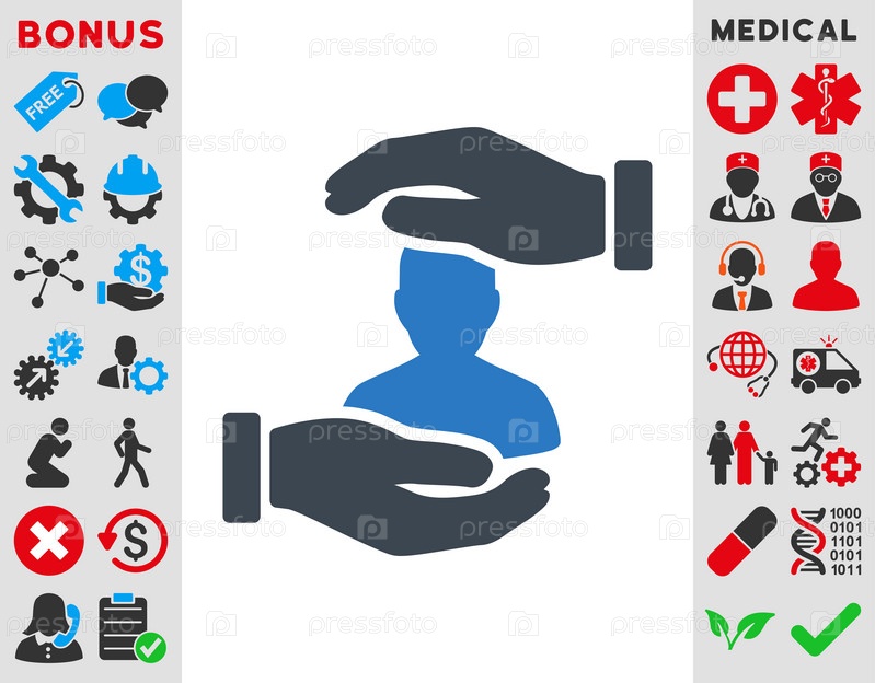 Пациент страхования иллюстрации значок. Стиль-биколор плоский символ, гладкая синего цвета, закругленные углы, белый фон