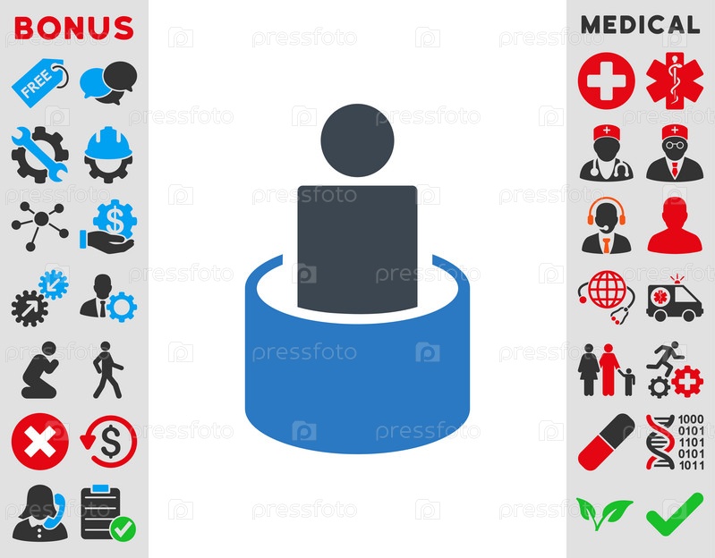 Пациент изоляции иллюстрации значок. Стиль-биколор плоский символ, гладкая синего цвета, закругленные углы, белый фон
