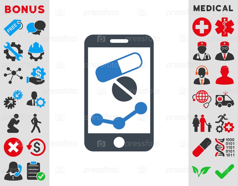 Аптека онлайн иллюстрации значок. Стиль-биколор плоский символ, гладкая синего цвета, закругленные углы, белый фон