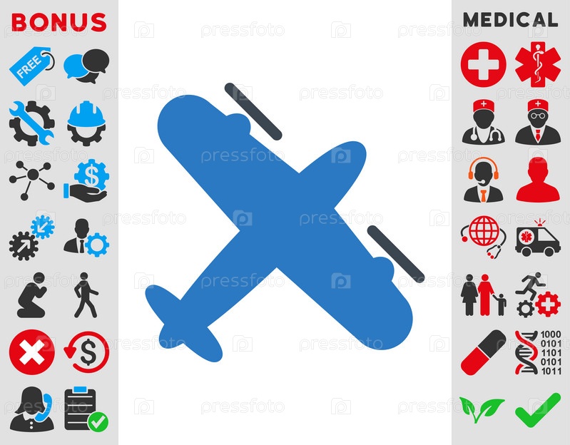 Винтовой самолет иллюстрации значок. Стиль-биколор плоский символ, гладкая синего цвета, закругленные углы, белый фон