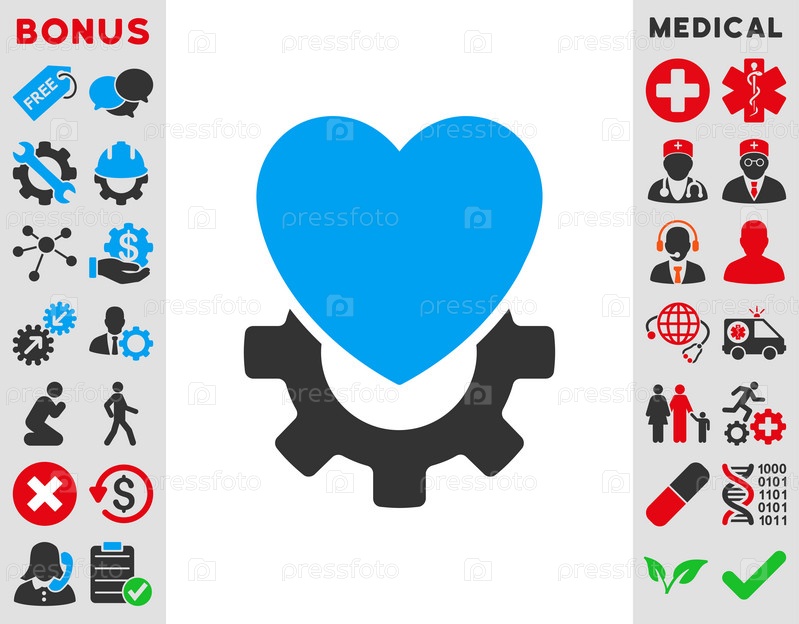 Механическое сердце иллюстрации значок. Стиль является биколор плоский символ, голубой и серый цвета, закругленные углы, белый фон