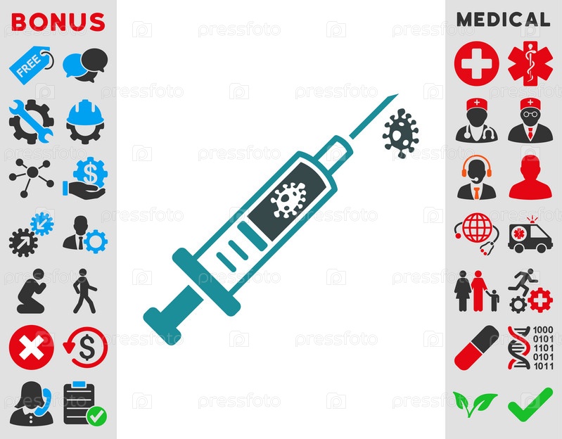 Инфекция инъекций иллюстрации значок. Стиль-биколор плоский символ, мягкого синего цвета, закругленные углы, белый фон