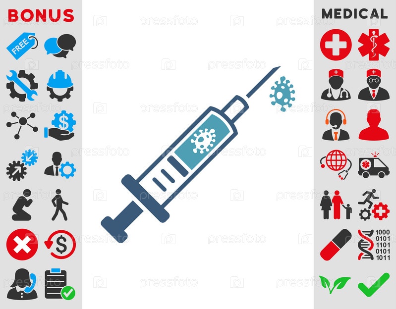 Инфекция инъекций иллюстрации значок. Стиль является биколор плоский символ, голубой и синий цвета, закругленные углы, белый фон