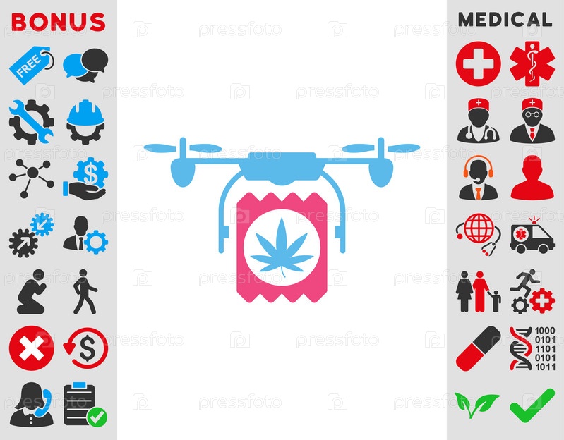 Наркотики дрон доставки иллюстрации значок. Стиль является биколор плоский символ, розовый и голубой цвета, закругленные углы, белый фон