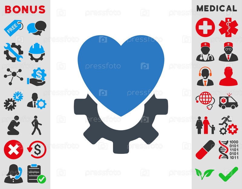 Механическое сердце иллюстрации значок. Стиль-биколор плоский символ, гладкая синего цвета, закругленные углы, белый фон
