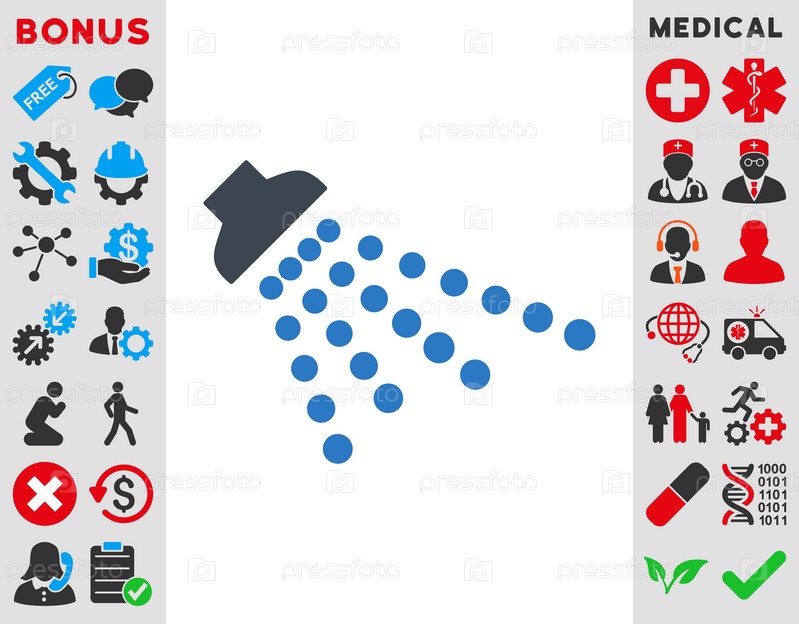 Иконка душ иллюстрации. Стиль-биколор плоский символ, гладкая синего цвета, закругленные углы, белый фон
