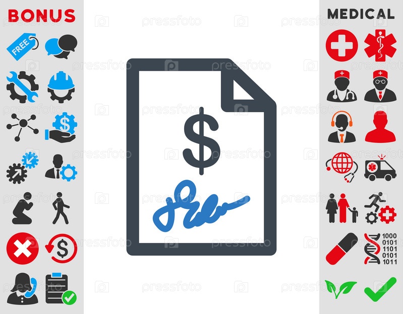 Подписанный счет иллюстрации значок. Стиль-биколор плоский символ, гладкая синего цвета, закругленные углы, белый фон