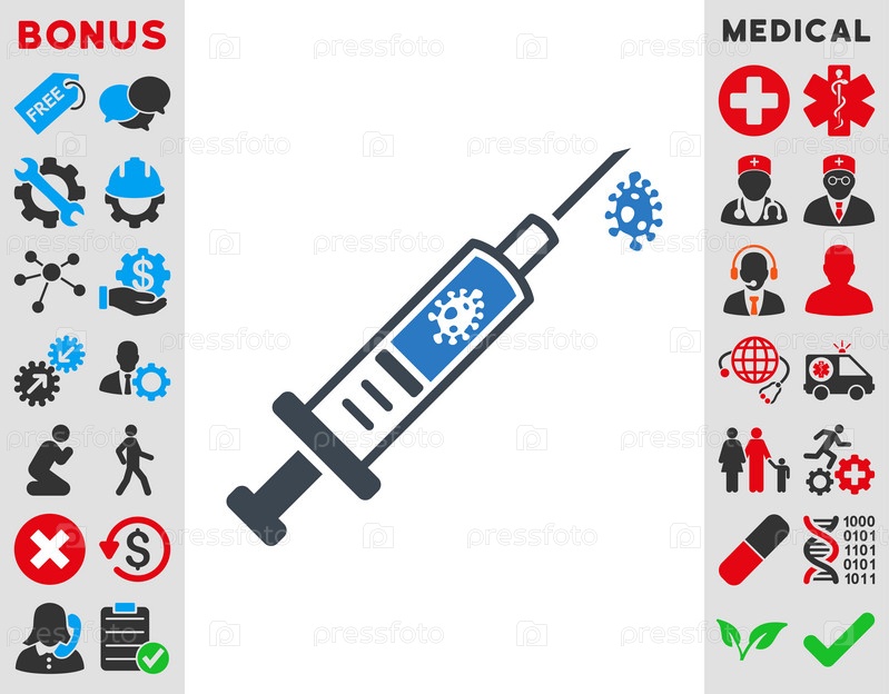 Инфекция инъекций иллюстрации значок. Стиль-биколор плоский символ, гладкая синего цвета, закругленные углы, белый фон