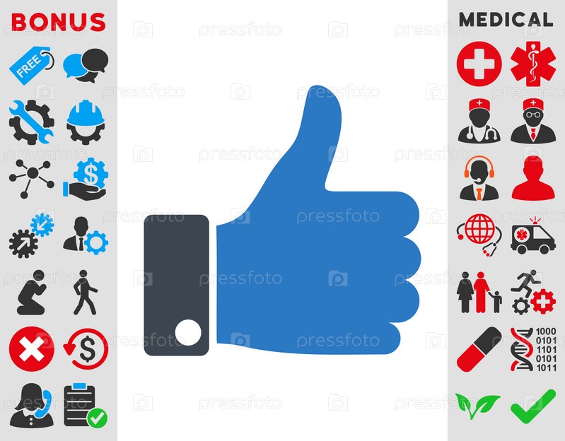 Пальца вверх значок иллюстрации. Стиль-биколор плоский символ, гладкая синего цвета, закругленные углы, белый фон
