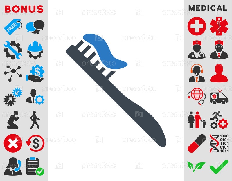 Зубная щетка иллюстрации значок. Стиль-биколор плоский символ, гладкая синего цвета, закругленные углы, белый фон