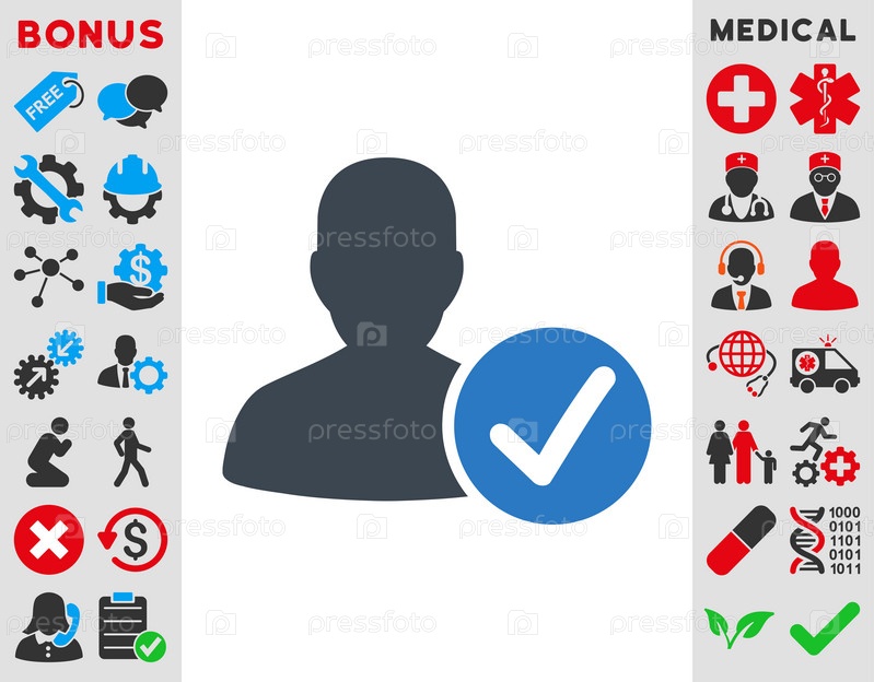Икона действует пациента иллюстрации. Стиль-биколор плоский символ, гладкая синего цвета, закругленные углы, белый фон