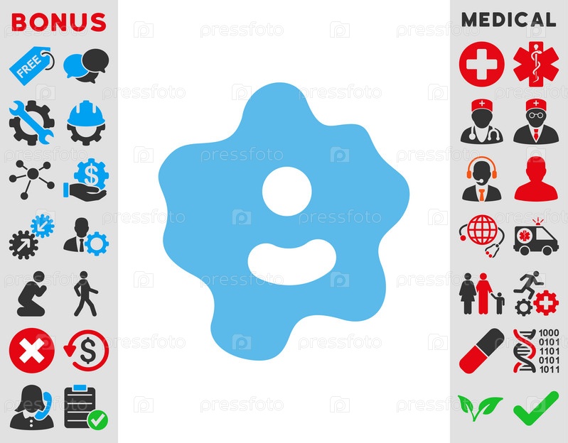 Амебы иллюстрации значок. Стиль является плоской символ, синий цвет, закругленные углы, белый фон