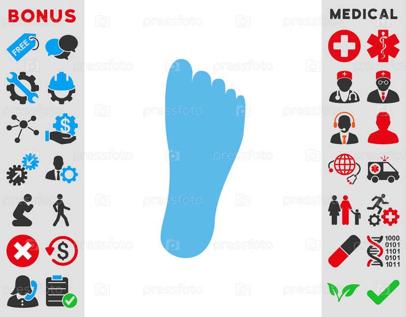 Нога иллюстрации значок. Стиль является плоской символ, синий цвет, закругленные углы, белый фон