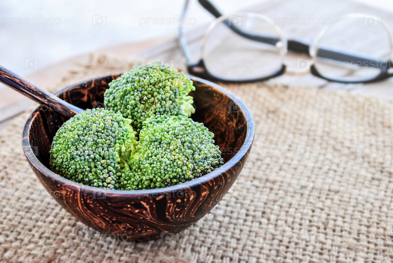 Свежая брокколи в деревянные чаши