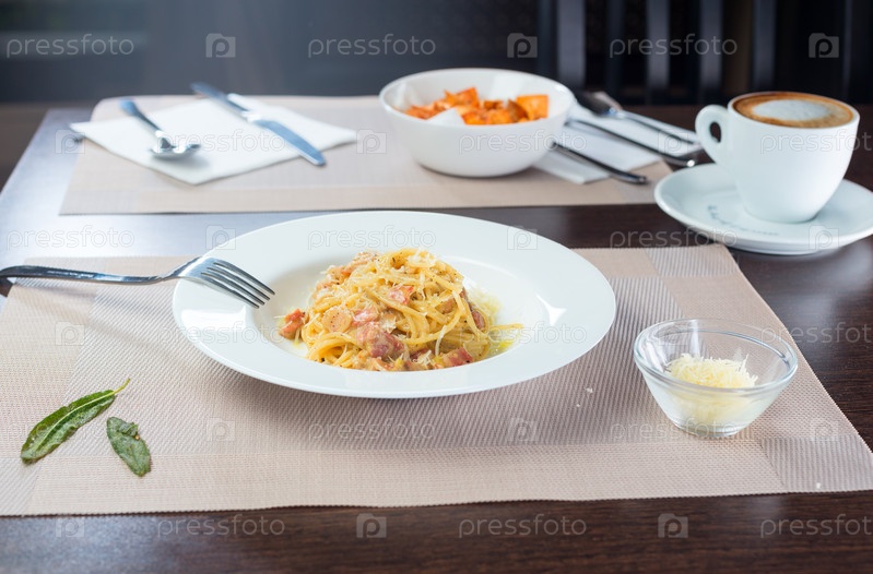 Итальянская паста болоньез на тарелке