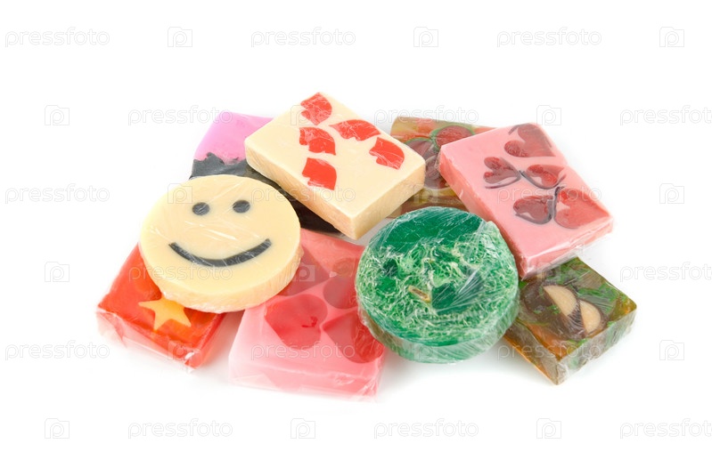 Мыло ручной работы на белом фоне