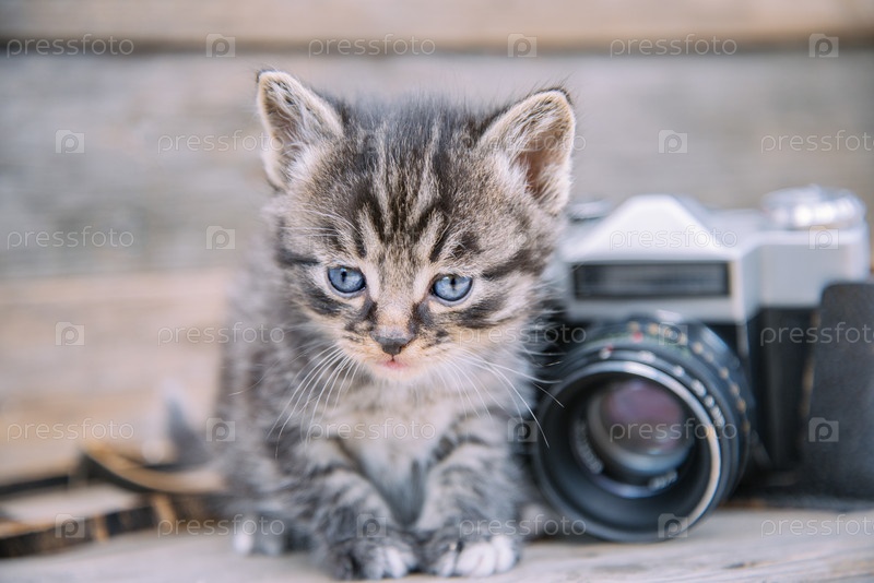 Котенок сидит возле камеры