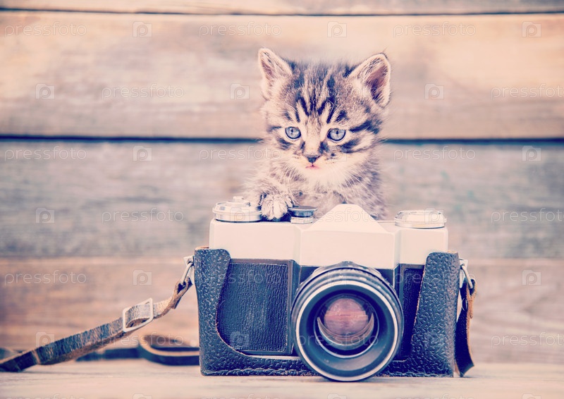 Котенок сидит возле камеры