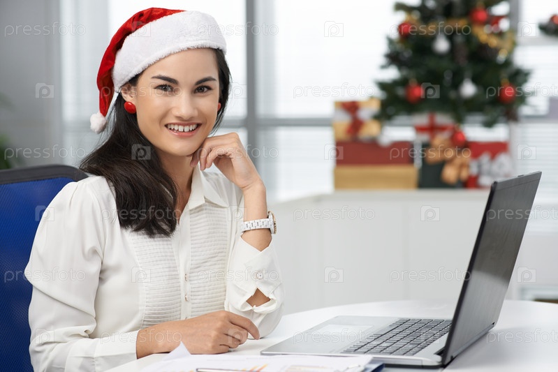Деловая женщина в рождественской шапке