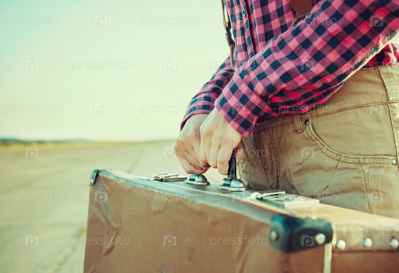 Женщина держит чемодан