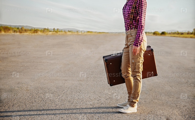 Женщина с чемоданом на дороге