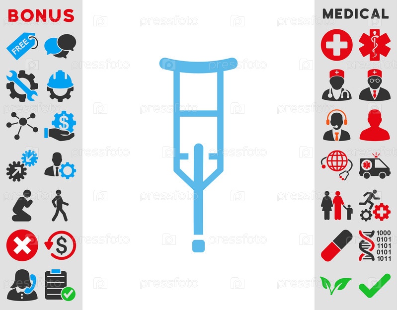 Костыль иллюстрации значок. Стиль является плоской символ, синий цвет, закругленные углы, белый фон