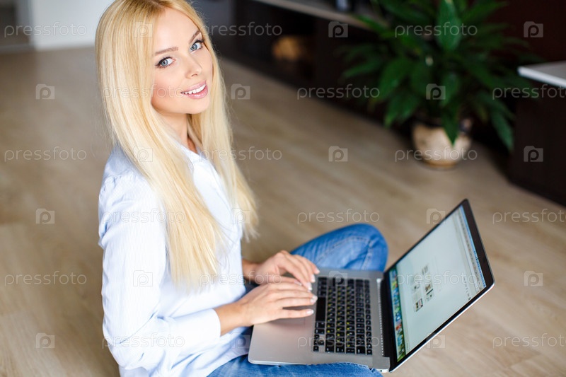 Красивая девушка с ноутбуком
