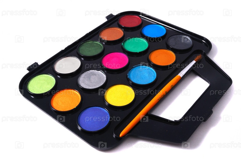 Набор акварельных красок и кисточка